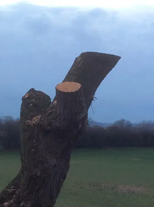 Here is the tree I am talking about. In the first picture, you can see the hole where the birds used to live. Very upsetting. Yes, I do agree tree is not ours. At least informing people what is meant to happen would be nice. Because is very close to the house, the aesthetic look is terrible now, and they disturbed the habitat.