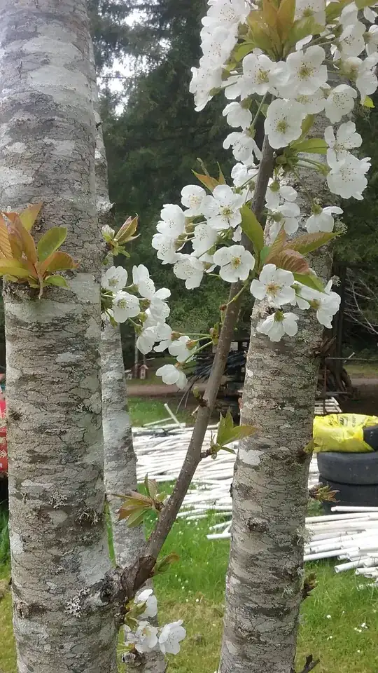 This is clearly not an apple tree! I have many apple tree and flowers will not come with a stem that large.