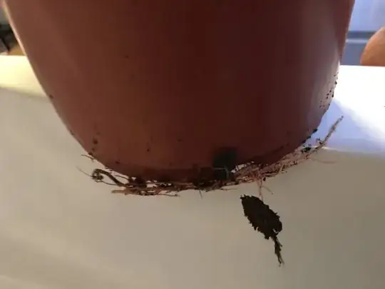 It looks to me that this pot was inside another pot, yes? You have to transplant it in a larger pot and from the amount of plant I am seeing you need a pot 6" bigger than this plastic terra cotta colored pot.