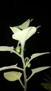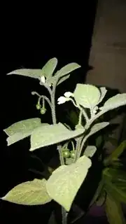 The plant is still small but growing, and it has some small fruit-beginning (all green, but one which is red), but it really doesn't seems like it's going to be a sweet potato or something similar. It looks more like a tiny cherry tomato.