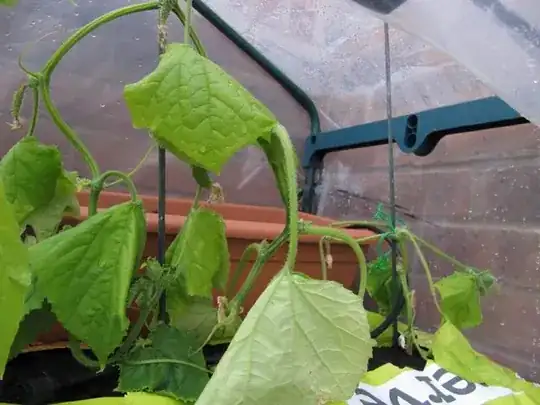 I ended up moving the cucumber plants straight into the greenhouse a few weeks ago, and since then they've gradually got worse and worse, with the leaves becoming very floppy and wilted, followed by the young fruit wilting, and now the entire stems are buckling and collapsing to the soil level. Meanwhile, I kept two plants indoors that were, up until that point, treated identically to the outside plants, and they're thriving (or, at least, not dying).