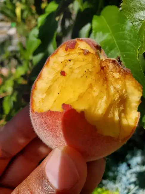 While I don't have a lot of experience with birds eating fruit, when they've eaten from our nectarines, they'd do holes that looked similar to slug bites, and usually only a little bit per fruit. There's quite a bit of that peach that's been eaten. – Brōtsyorfuzthrāx Nov 17 '21 at 02:17