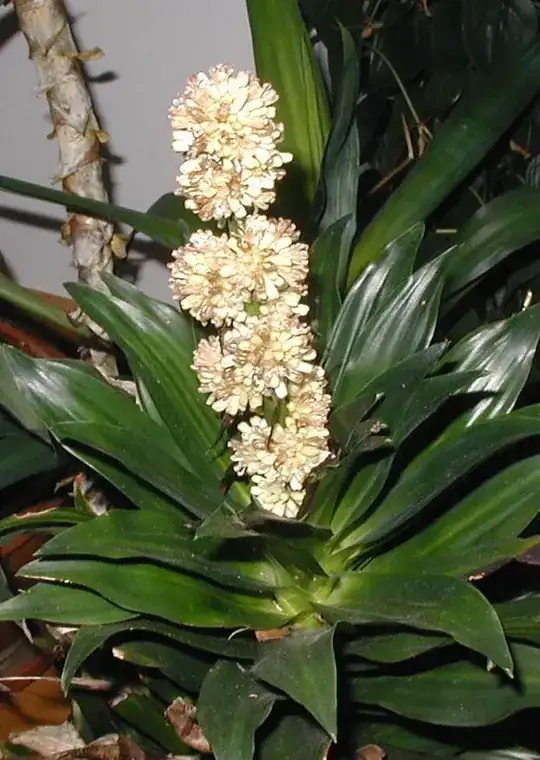 My cut Dracaena (houseplant) has become very tall, and now one of the "branches" has flowered. What is the typical way a Dracaena is maintained as a household specimen plant as it outgrows the configuration as seen in the example below?