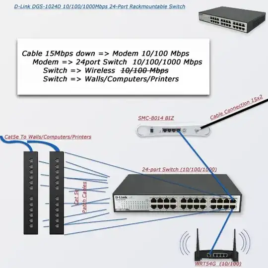 One upgrade we are considering is a D-Link DGS-1024D Unmanaged 24xRJ45 port 10/100/1000Mbps Unmanaged Rackmountable Switch. It will cost about $140 USD. My idea for the network configuration is outlined in the following image: