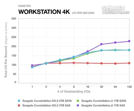 As an aside, I really don't know what kind of faith I'd put into those numbers. Storage Review does a pretty decent job, I think, but I can't figure out why they didn't get another drive to test when the disk started performing like this: