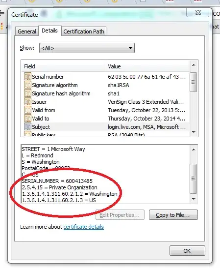 In many of the EV SSL certificates, the following OIDs are specified in the "Subject" field of issued certificates: