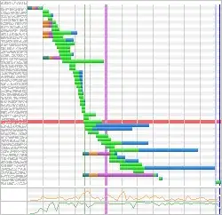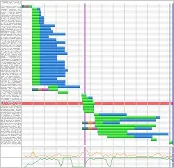 The fact it goes from a rather diagonal waterfall to a straight vertical drop is expected, multiplexing in full force.