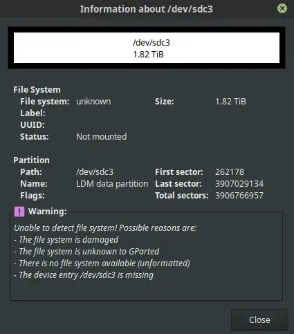 /dev/sdc3 262178 3907029134 3906766957 1,8T Microsoft LDM data