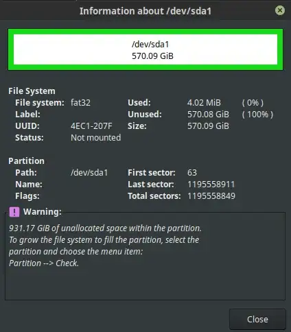 Partition 1 does not start on physical sector boundary.